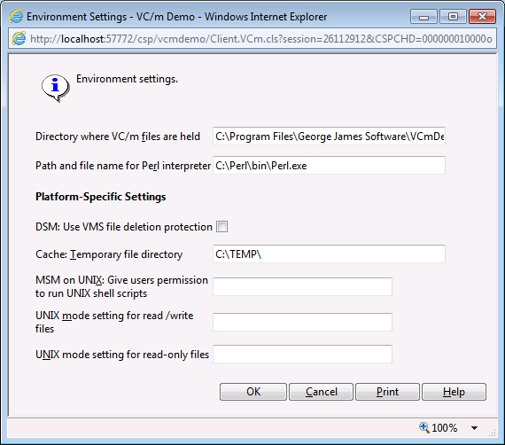 2. Click on the 'Environment' option and the Environment Settings dialog should appear.