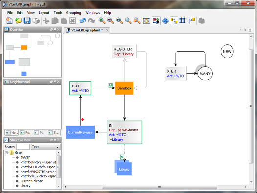 This function generates a GraphML file that you render using the free yEd graph editor from yWorks. To create a diagram, follow these instructions: