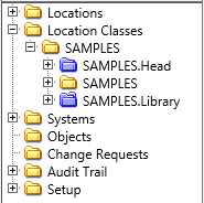 - 'SAMPLES' is a working location because it maps onto a physical storage space that this developer can access. It is set up so that the user can check objects out to it, at which point they can modify and execute them.