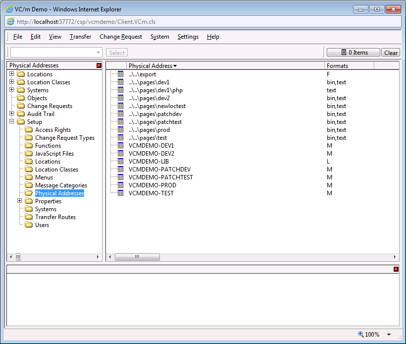 To manage physical storage spaces, navigate in the folders panel to Setup -> Physical Addresses. If you have already set up some locations and mapped them onto some physical storage spaces, each physical address will be listed in the main panel: