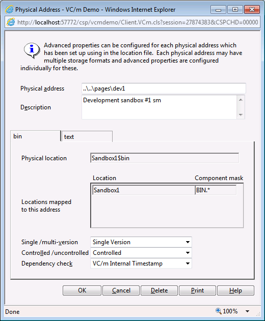 An uncontrolled physical location is one whose contents Deltanji does not assume it has full knowledge of. Uncontrolled locations can be referenced within Deltanji in exactly the same way as controlled locations. The difference is that unregistered components are not protected from being overwritten in uncontrolled locations. For example, suppose a namespace contains the routine X.MAC that is not part of any object active at the location that maps MAC components to M-format storage in this namespace. In other words, MAC.X is an unregistered component. Transferring to this location an object with a component MAC.X will overwrite the existing X.MAC routine if the corresponding physical location is uncontrolled. By contrast, if the physical location is controlled the transfer will fail with the message "MAC.X exists at destination but is not registered to Deltanji".