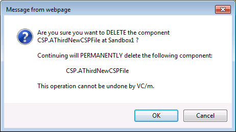 3. Press 'OK' on the message box to confirm that you really want to physically delete the component.