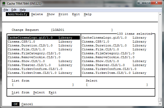 A multi-item window also has a Select prompt, which is reached by typing S. This enables items to be selected and /or de-selected from the right-hand list using wildcards and ranges. A minus sign before the items is used to de-select them.