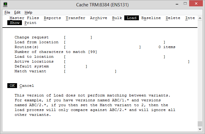 4. Open VC/m's terminal interface. Navigate to Manager -> Load and choose 'Show'. You will be prompted with the following screen: