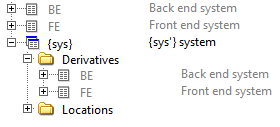 A definition generated from a template is called a derivative. Derivatives are listed in a subfolder of the template definition row. They also list as rows in their own right, but are displayed with grey text to indicate that they are not modifiable. Derivatives can be deleted, subject to the usual constraints on deletion of definition entities (e.g. a location cannot be deleted if routes refer to it). However, if a derivative is deleted without also removing either the variable value that produced it or the entire template from which it was derived, then when the template is next saved the deleted derivative will be recreated.